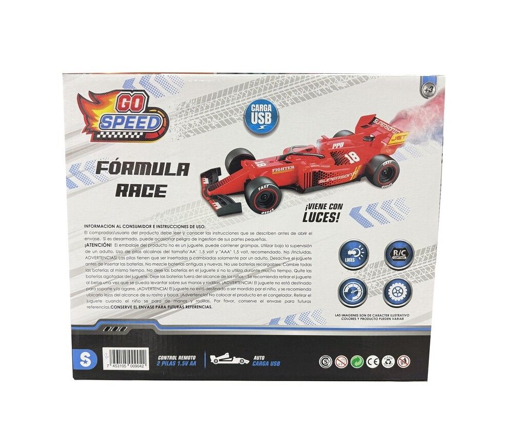 AUTO RADIO CONTROL FORMULA 1 EFECTO HUMO USB COD 55741 NEGRO