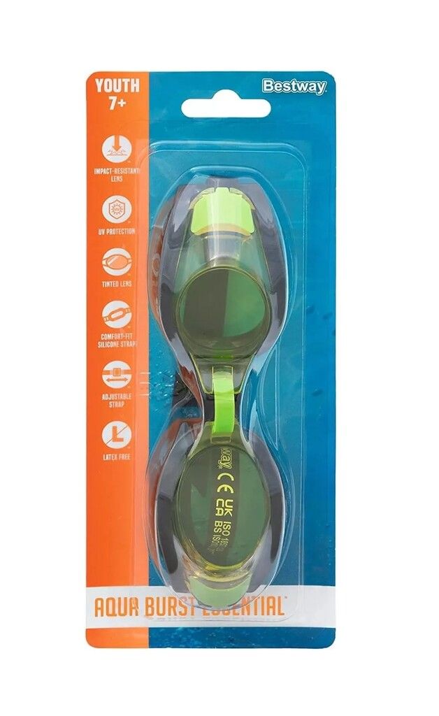 ESPECIFICACIONES TECNICAS ANTIPARRAS BESTWAY PRO RACER DE 7 A 14 ANOS CRISTALES AHUMADOS DE ALTA DEFINICION PUENTE NASAL AJUSTABLE Y TIRA DE SUJECION DE SILICONA PIEZAS OCULARES SUAVES Y QUE OFRECEN UN AJUSTE COMODO
