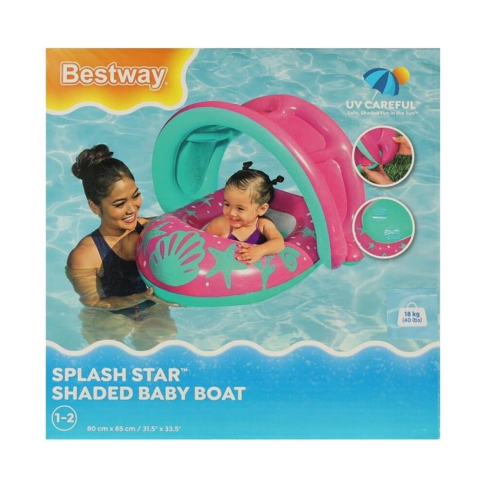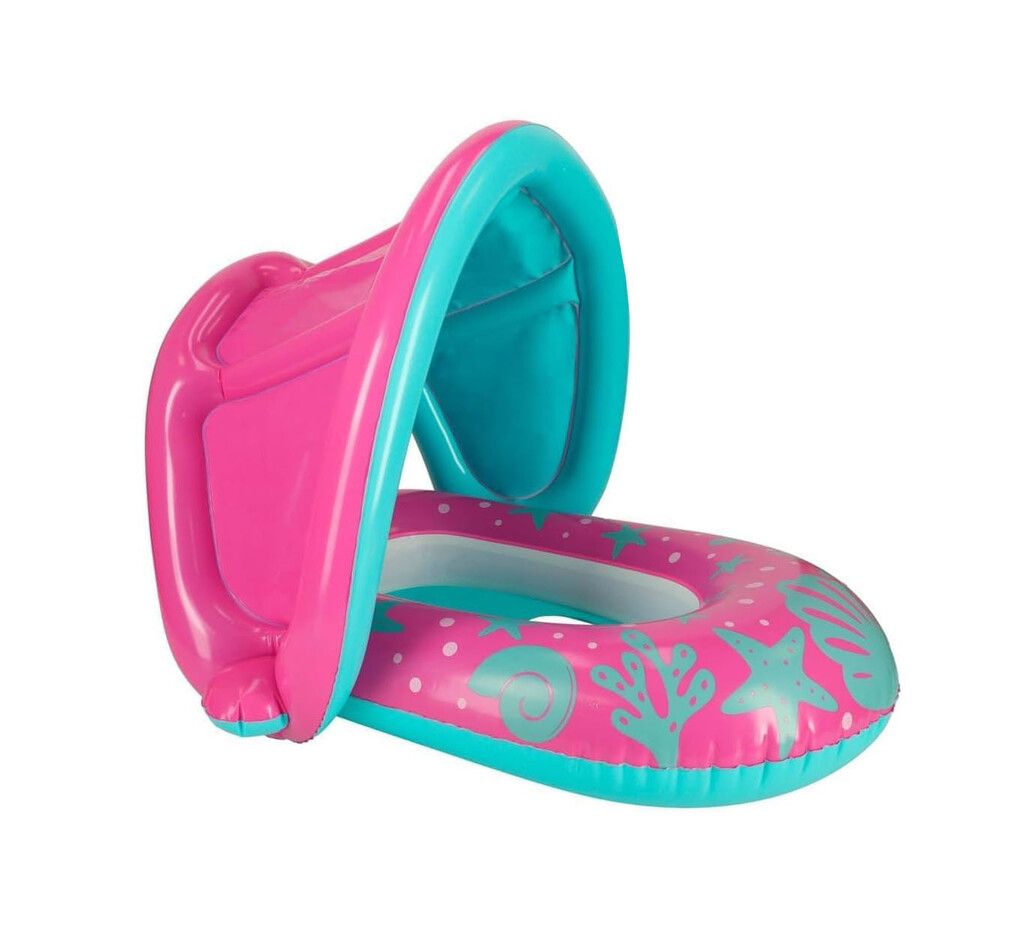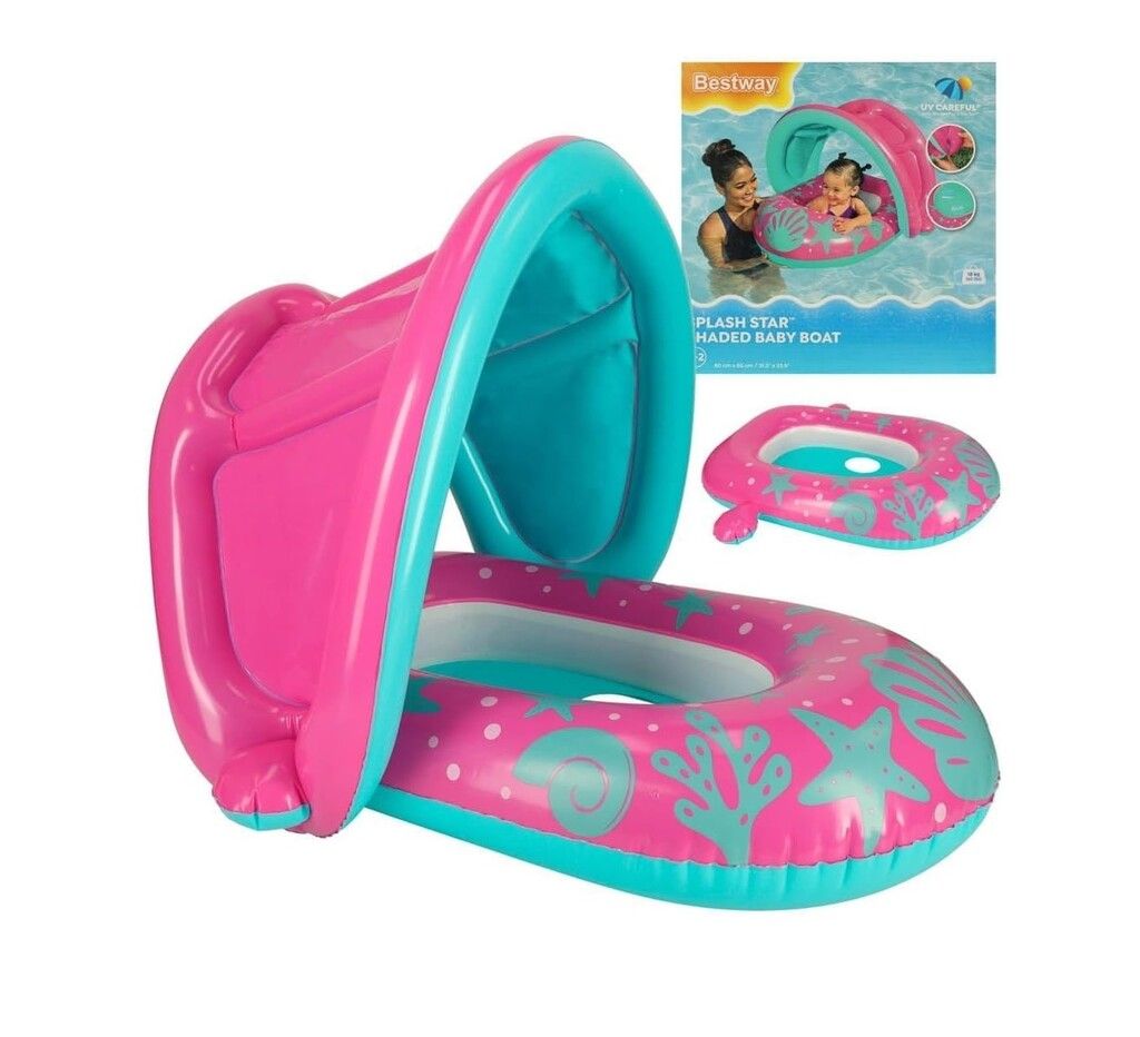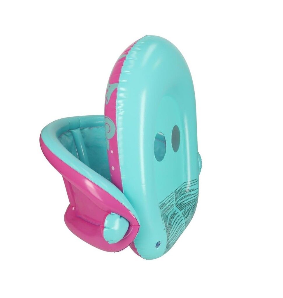 ? FLOTADOR PILETA BEBE ? MODELO- 34091 ASIENTO BABY CAPOTA. ? ASIENTO FLOTADOR. ? VALVULAS DE SEGURIDAD. ? VINILO RESISTENTE. ? QUITASOL DESMONTABLE. ? COMODAS ABERTURAS PARA LAS PIERNAS. ? FACIL DE INFLAR. ? TECHO CON PROTECCION UV. ? ANTIVUELCO. ? MEDIDAS- 80 CM X 85 CM.