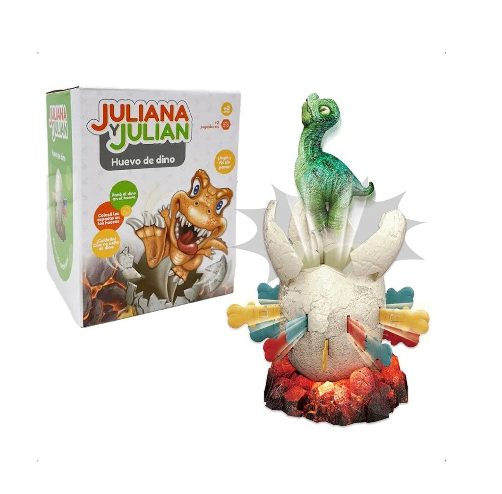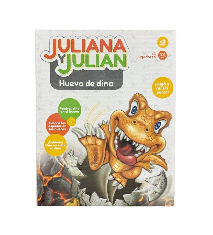 JULIANA Y JULIAN HUEVO DEPATO ES UN JUEGO LLENO DE EMOCION Y RISAS. COLOCA EL DINO EN EL HUEVO INSERTA LAS ESPADAS Y TRATA DE QUE NO SALTE. ¡DIVERSION ASEGURADA PARA TODOS! INCLUYE : 16 ESPADAS 1 MUNECO DE PATO HUEVO Y BASE MEDIDAS DEL DINO : 6CM ALTO X 2 ANCHO HUEVO 20CM ALTO X 8 CM LARGO