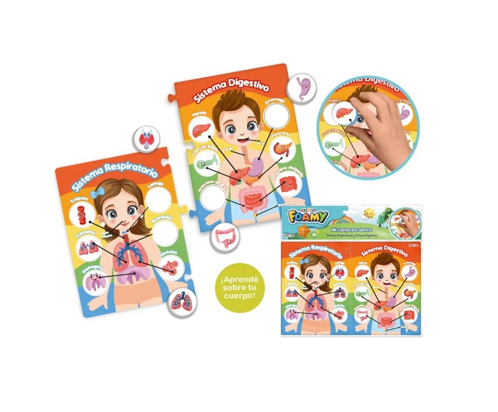 MI CUERPO POR DENTRO. SISTEMA DIGESTIVO Y RESPIRATORIO. 2 ENCASTRES EN GOMA EVA SOBRE SISTEMA DIGESTIVO Y SISTEMA RESPIRATORIO. CON FIGURAS QUE SE EXTRAEN PARA SABER DONDE ESTAN UBICADAS ¡APRENDER AHORA ES MAS FACIL! ES UN PRODUCTO LAVABLE!