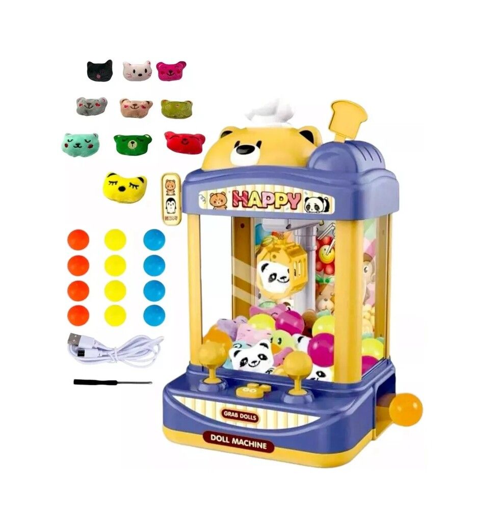 MAQUINA CON GARRA EXPENDEDORA DE JUGUETES Y PELUCHES INFANTIL – FAYDI – CARACTERISTICAS: ? INCLUYE PELOTITAS Y PELUCHITOS PERO ADEMAS LE PODES AGREGAR TODO LO QUE ESTE EN UN TAMANO QUE PUEDA AGARRAR LA GARRA. ? TIENE 2 PALANCAS COMO LAS MAQUINAS DE AGARRE VERDADERAS: 1 QUE VA DE DERECHA A IZQUIERDA Y 1 QUE BAJA Y EJECUTA EL AGARRE. ? LA MAQUINA ES DE EXCELENTE CALIDAD Y TERMINACION. ? ES UN JUGUETE INTERACTIVO QUE DESARROLLA LA COORDINACION DE MANOS OJO Y MOTRICIDAD FINA.