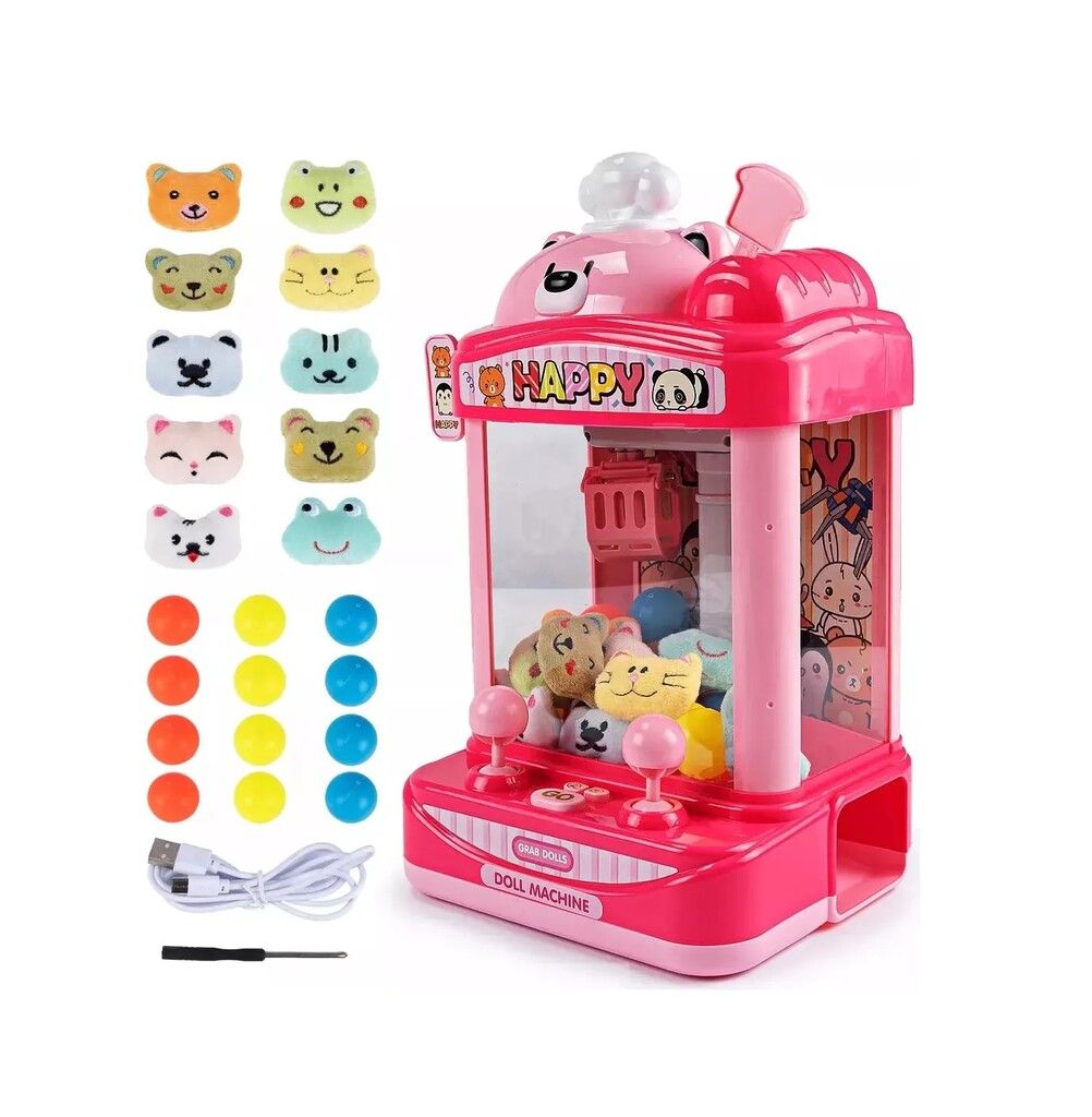JUEGO GARRA MAQUINA ATRAPA PELUCHES LUZ SONIDO USB COD 2690 ROSA