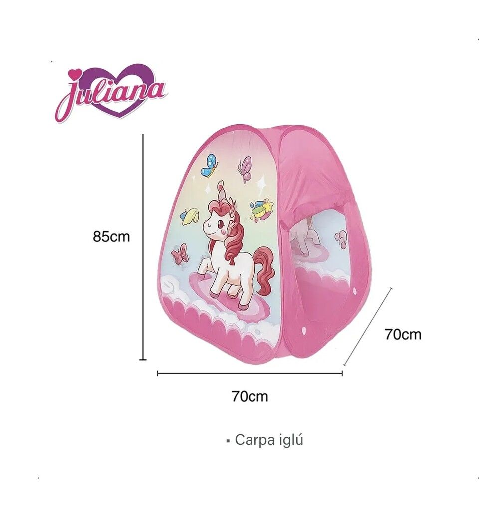 CARPA INFANTIL IGLU DISENO UNICORNIO JULIANA DESCRIPCION DEL PRODUCTO ? CARPA IGLU ? MEDIDA ARMADO: 85 CM X 70 CM X 70 CM ? DISENO PLEGABLE Y LIGERO: SE ARMA Y DESARMA EN SEGUNDOS Y ES MUY FACIL DE GUARDAR Y TRANSPORTAR. ? ESTAMPADO DIVERTIDO: DECORADA CON LOS ADORABLES PERSONAJES DE UNICORNIO QUE INVITAN A LA IMAGINACION. ? ESPACIO ACOGEDOR Y PRIVADO: UN LUGAR SEGURO PARA QUE LOS NINOS TENGAN SU PROPIO RINCON. ? EDAD RECOMENDADA: +3 ANOS ? LAS ESPECIFICACIONES COLORES Y CONTENIDO PUEDEN VARIAR CON RESPECTO A LA ILUSTRACION. ? CODIGO: JUL0153