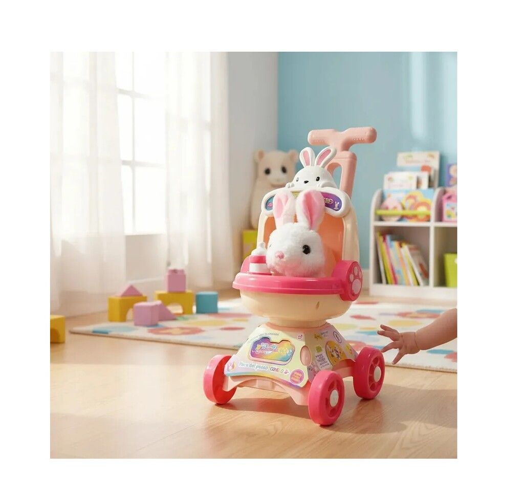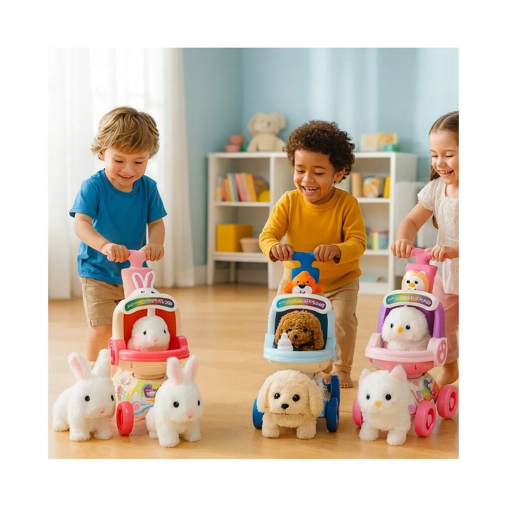 HORA DEL PASEO ? MATERIAL: PLASTICO ? CONTIENE: PELUCHE CON SONIDO Y MOVIMIENTO CARRITO Y MAMADERA ? MEDIDA DEL CARRITO: 40 5 CM X 18 CM X 23 CM ? PELUCHE CON MOVIMIENTO Y SONIDO SUAVE AL TACTO Y FACIL DE ABRAZAR. ESTE ADORABLE PERRITO ES PERFECTO PARA ACOMPANAR A LOS PEQUENOS EN SUS AVENTURAS. ? EDAD RECOMENDADA: +3 ANOS ? LAS ESPECIFICACIONES COLORES Y CONTENIDO PUEDEN VARIAR CON RESPECTO A LA ILUSTRACION.