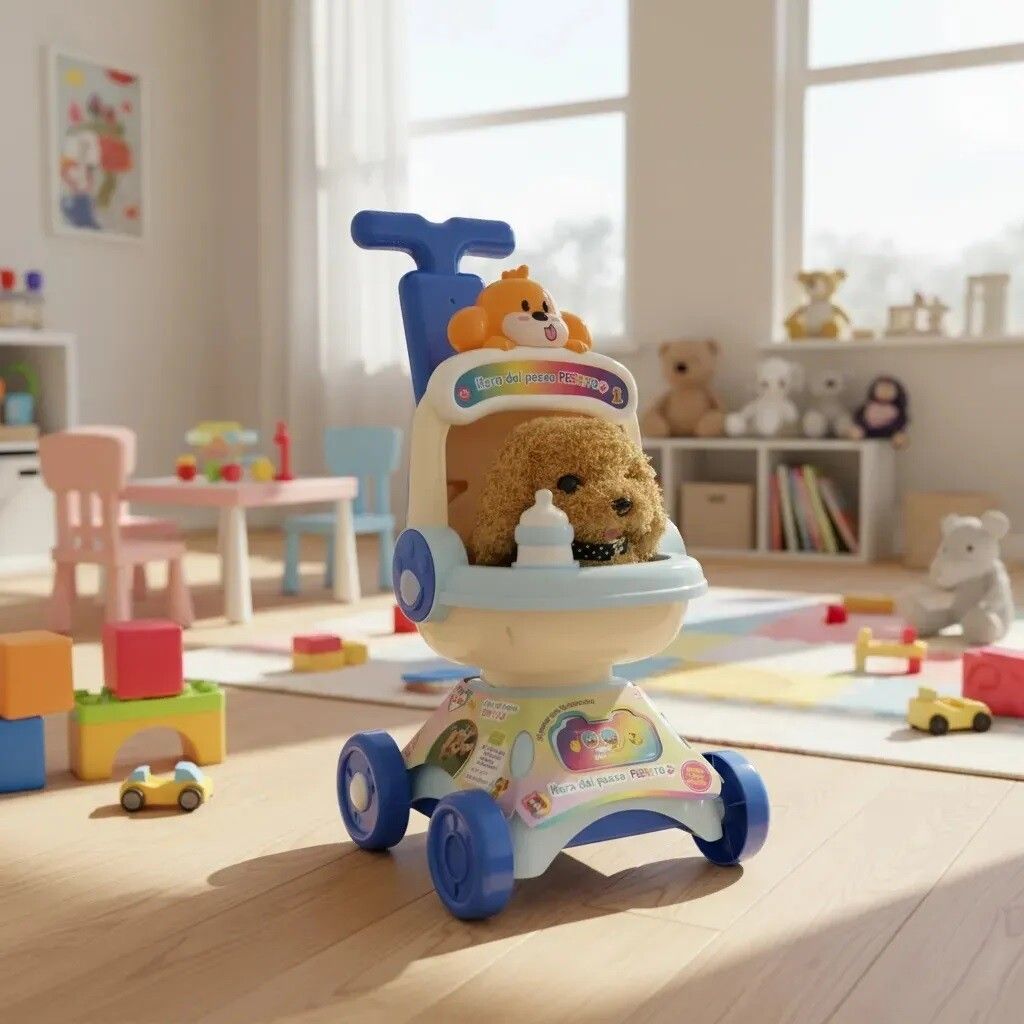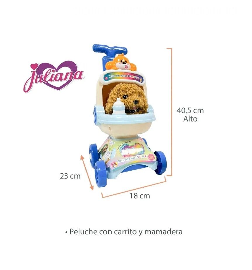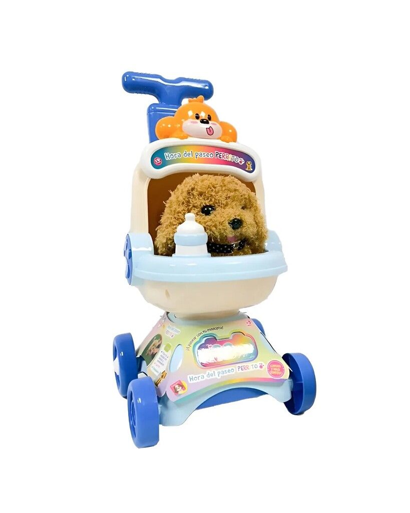 HORA DEL PASEO ? MATERIAL: PLASTICO ? CONTIENE: PELUCHE CON SONIDO Y MOVIMIENTO CARRITO Y MAMADERA ? MEDIDA DEL CARRITO: 40 5 CM X 18 CM X 23 CM ? PELUCHE CON MOVIMIENTO Y SONIDO SUAVE AL TACTO Y FACIL DE ABRAZAR. ESTE ADORABLE PERRITO ES PERFECTO PARA ACOMPANAR A LOS PEQUENOS EN SUS AVENTURAS. ? EDAD RECOMENDADA: +3 ANOS ? LAS ESPECIFICACIONES COLORES Y CONTENIDO PUEDEN VARIAR CON RESPECTO A LA ILUSTRACION.