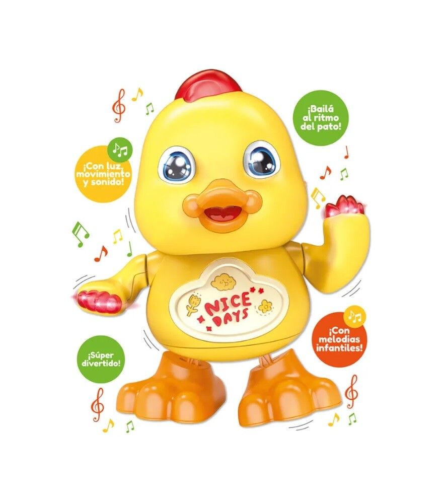 QUE EMPIECE LA FIESTA CON EL PATO BAILARIN DE JULIANA Y JULIAN! ESTE ADORABLE PATO DE JUGUETE NO SOLO ES DIVERTIDO SINO QUE TAMBIEN ES INTERACTIVO. CON SOLO ENCENDERLO SE PONDRA A BAILAR AL RITMO DE LA MUSICA BALANCEANDOSE Y MOVIENDO LOS BRAZOS. ES EL COMPANERO PERFECTO PARA ANIMAR CUALQUIER MOMENTO DE JUEGO FOMENTANDO EL MOVIMIENTO LA ALEGRIA Y LA COORDINACION DE LOS MAS PEQUENOS DE LA CASA.