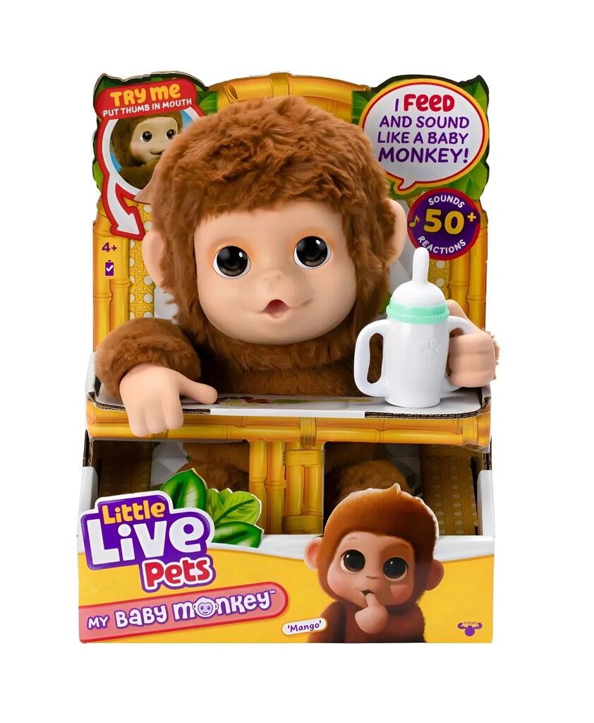 CONOCE A MANGO LA ADORABLE MASCOTA INTERACTIVA DE LITTLE LIVE PETS QUE ENCANTARA A LOS MAS PEQUENOS DE LA CASA. DISENADA PARA NINOS DE 2 A 4 ANOS ESTA SIMPATICA MONITA ES PERFECTA PARA ESTIMULAR LA IMAGINACION Y EL JUEGO CREATIVO. MANGO RESPONDE A TUS CARICIAS Y SONIDOS CREANDO UNA EXPERIENCIA UNICA Y DIVERTIDA QUE MANTENDRA A LOS NINOS ENTRETENIDOS DURANTE HORAS.
