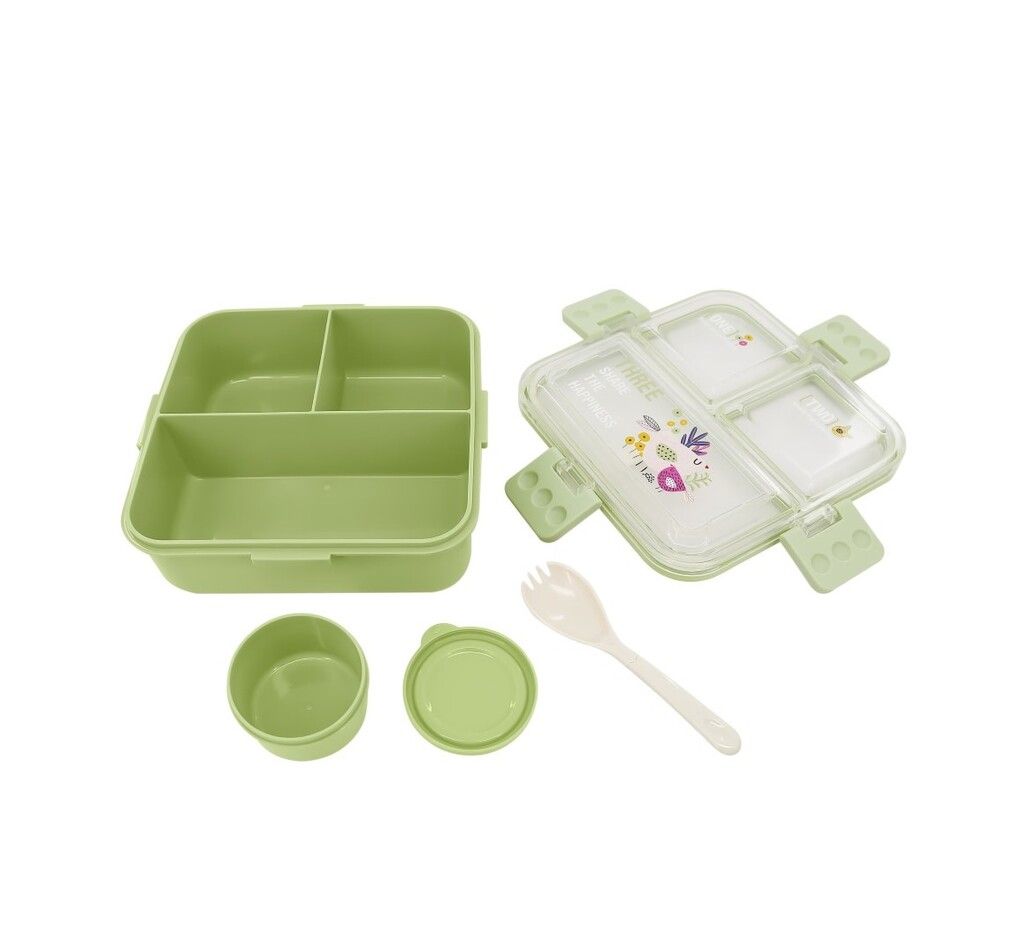 LUNCHERA TRENDY CIERRE HERMETICO CON SILICONA INCLUYE TENEDOR Y ACCESORIOS