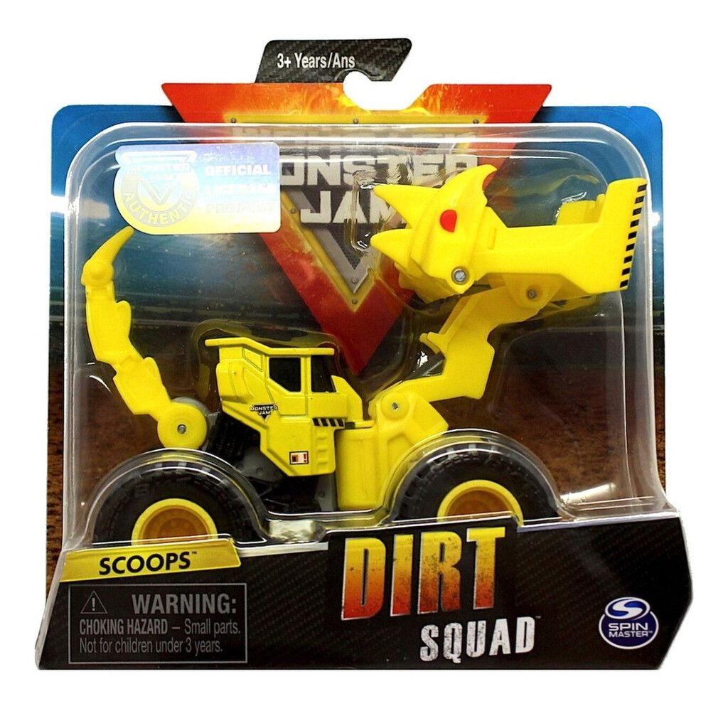 MONSTER JAM EN VERSION »DIRT SQUAD». SON MAQUINAS CON PALAS MECANICAS O RODILLOS – LISTAS PARA DESTRUIR TODO A SU PASO! CADA UNA CON UN DISENO PARTICULAR. EDAD RECOMENDADA A PARTIR DE 3 ANOS
