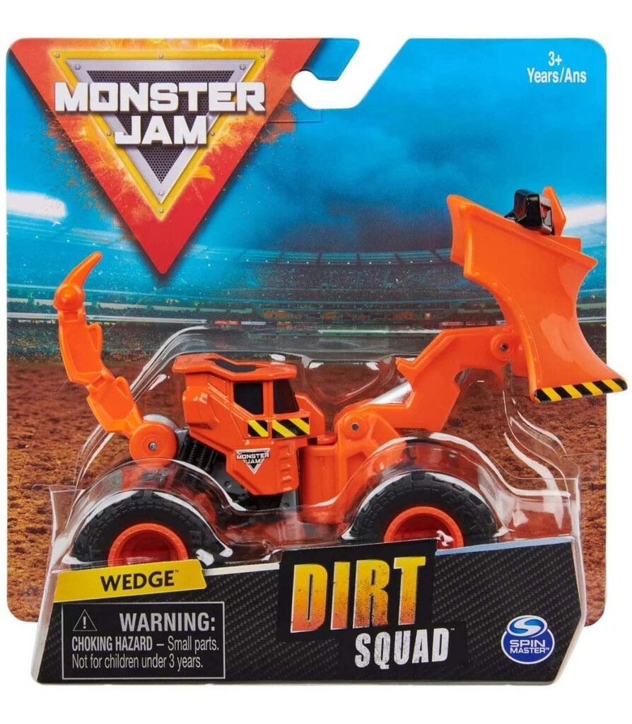MONSTER JAM EN VERSION »DIRT SQUAD». SON MAQUINAS CON PALAS MECANICAS O RODILLOS – LISTAS PARA DESTRUIR TODO A SU PASO! CADA UNA CON UN DISENO PARTICULAR. EDAD RECOMENDADA A PARTIR DE 3 ANOS
