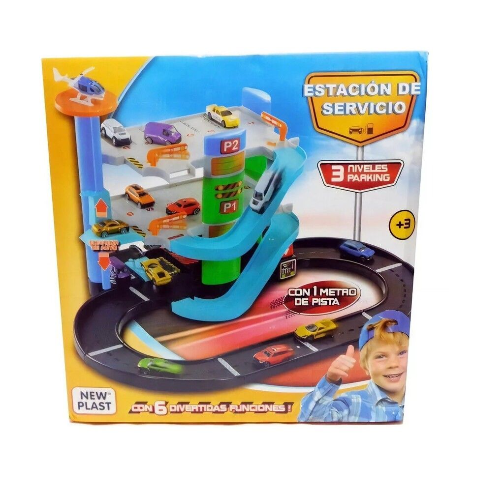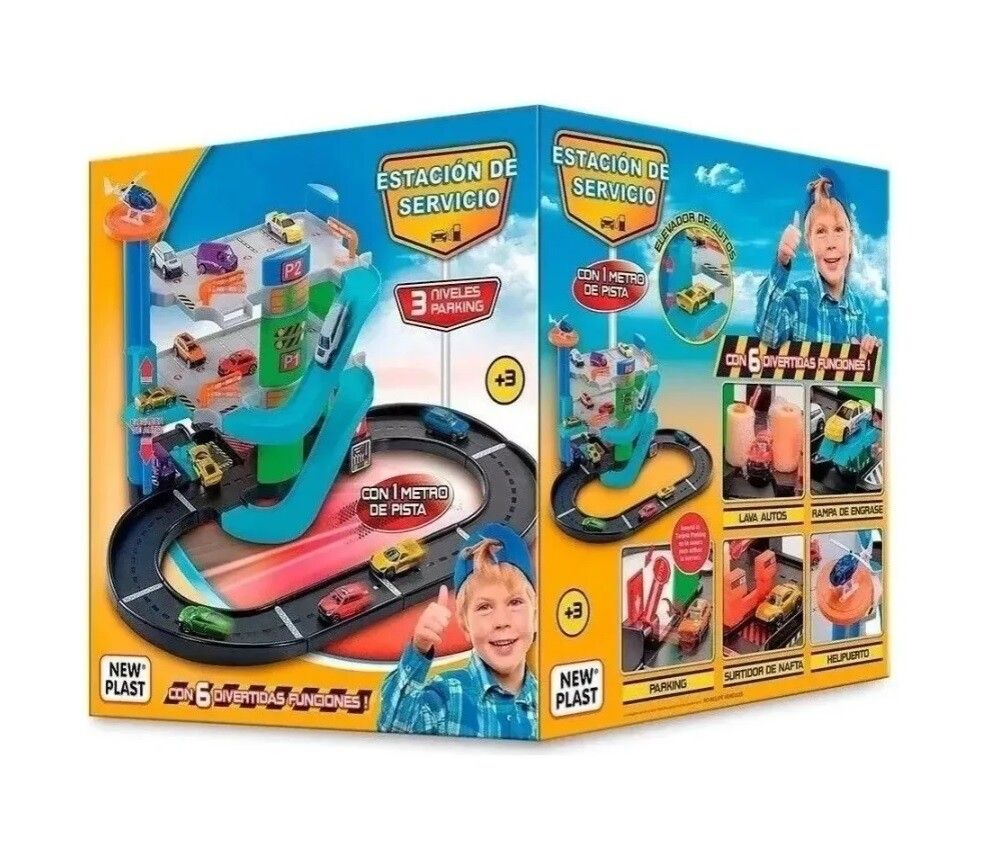 – ESTACION DE SERVICIO CON 3 NIVELES Y 6 FUNCIONES -MARCA: NEW PLAST – VIENE CON 1 METRO DE PISTA PARA AUTOS (NO INCLUYE AUTOS) – FUNCIONES: 3 PISOS DE PARKING ELEVADOR DE AUTOS LAVA AUTOS PARKING SURTIDOR DE NAFTA HELIPUERTO PLAYA DE ENGRASE.