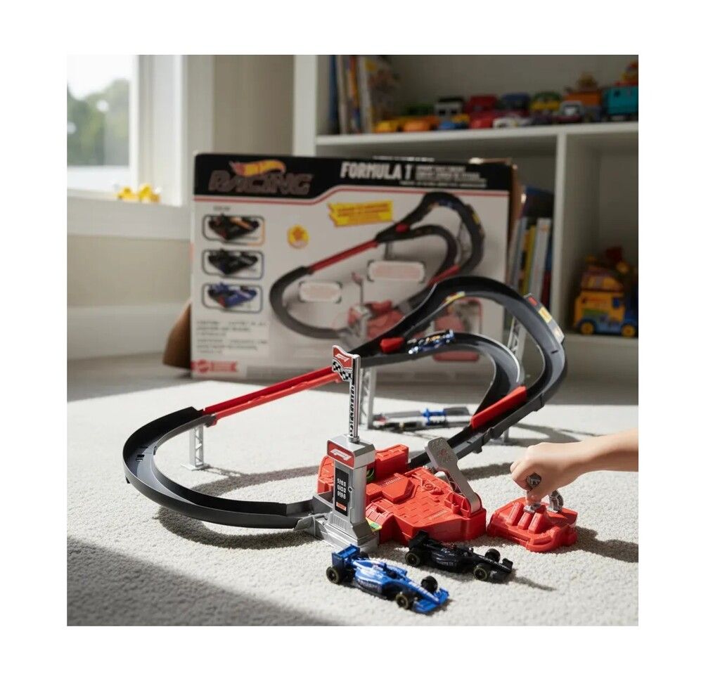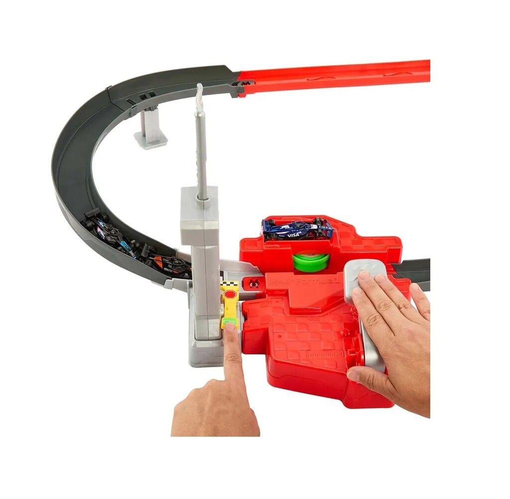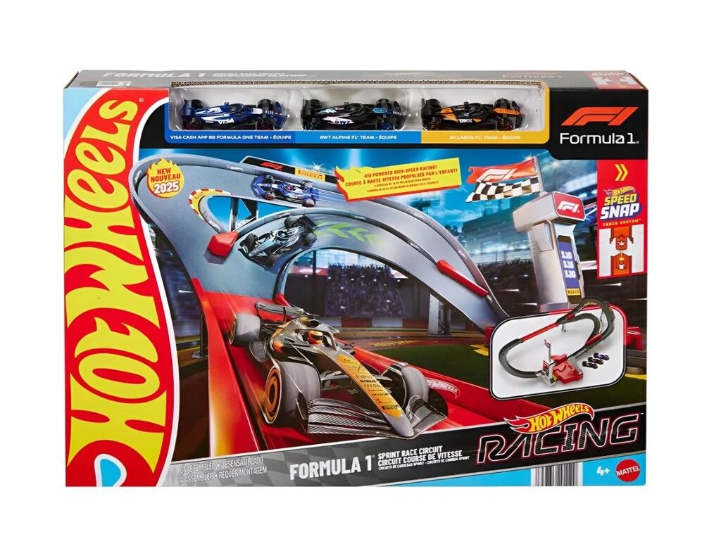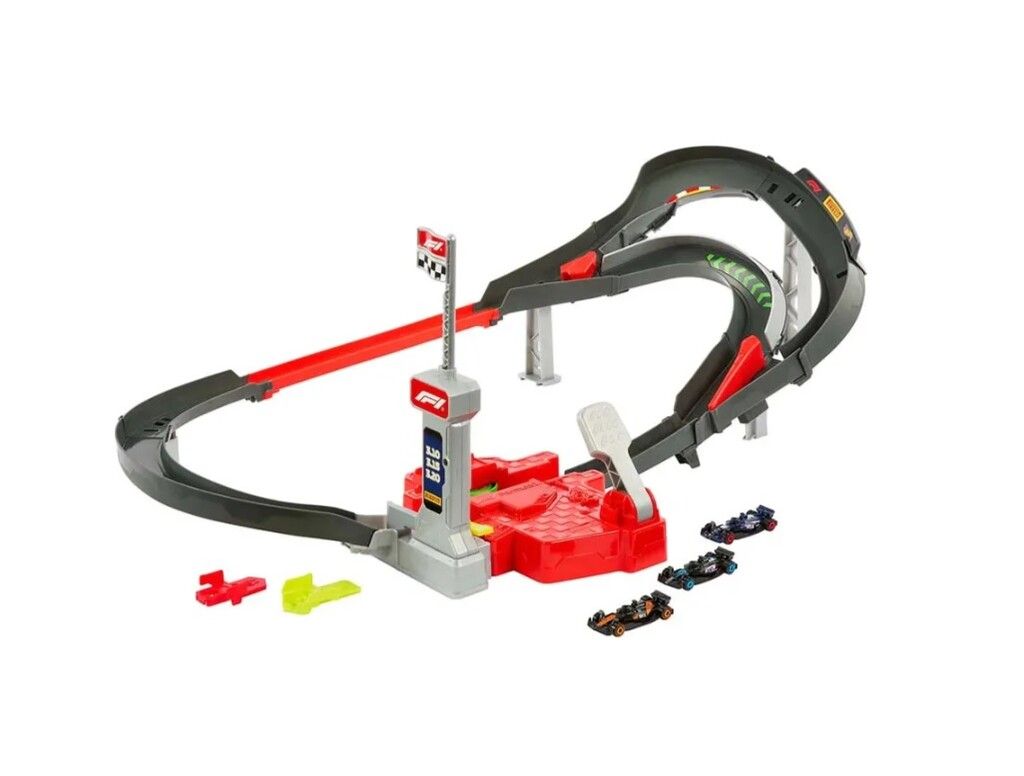 PISTA HOT WHEELS FORMULA 1 – CIRCUITO DE CARRERAS SPRINT MODELO JDY15 – INCLUYE 1 PISTA + TRES COCHES DE FORMULA 1 DE FUNDICION A ESCALA 1:64 CON DECORACIONES A JUEGO CON LOS EQUIPOS FAVORITOS DE LOS FANS COMO MCLAREN BWT ALPINE Y VISA CASH APP RB Y DOS MODOS DE JUEGO. SUBE LOS VEHICULOS A LA PISTA Y ELIGE ENTRE DOS MODOS: INFINITO O CARRERA. EN EL MODO INFINITO LOS COCHES SORTEAN LAS CURVAS Y DOMINAN LAS DINAMICAS CURVAS.