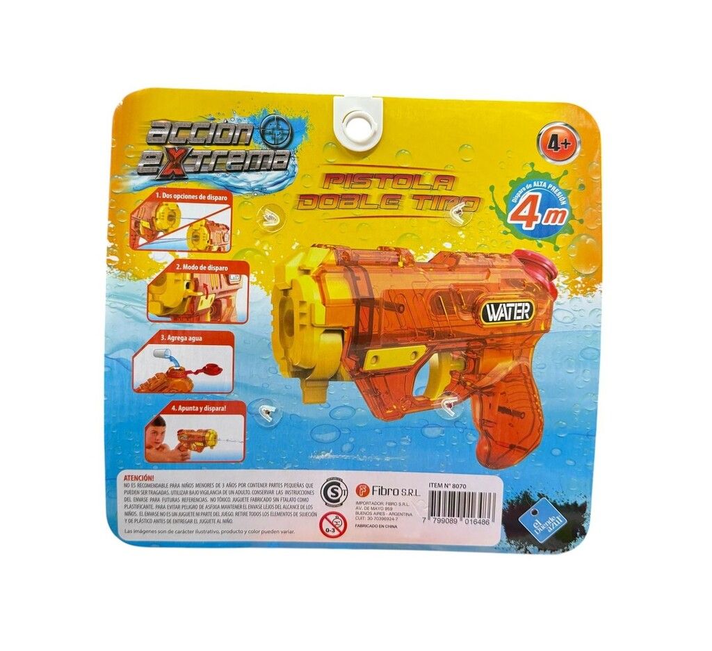 PISTOLA DE AGUA DOBLE TIRO EL DUENDE AZUL COD 8070 NARANJA